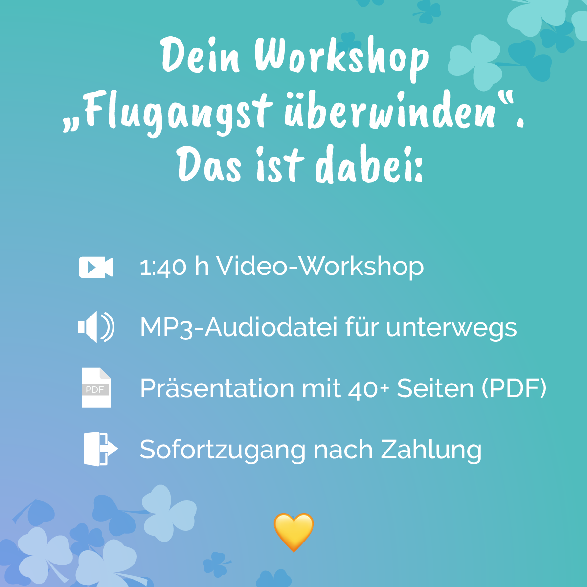 Kein Abo oder ähnliches: Nach einmaliger Zahlung erhältst du sofort Zugang zum Workshop und allen dazugehörigen Dokumenten. Du kannst dir alles so lange und so oft du magst anschauen.