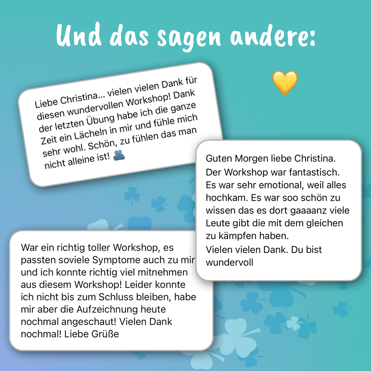 Du hast körperliche Symptome wie Schwindel, Herzstolpern, Magenprobleme oder Atemnot und fragst dich immer wieder: „Ist das wirklich nur die Angst?“ Dann ist dieser Workshop genau richtig für dich. In diesem Workshop spreche ich (Christina) gemeinsam mit Ben ganz offen über unsere persönlichen Erfahrungen mit körperlichen Symptomen bei Angst und Stress. Wir beide sind Ex-Betroffene und wissen genau, wie sich das anfühlt – und auch, wie hilflos man sich oft fühlt, wenn man mit Symptomen allein dasteht.