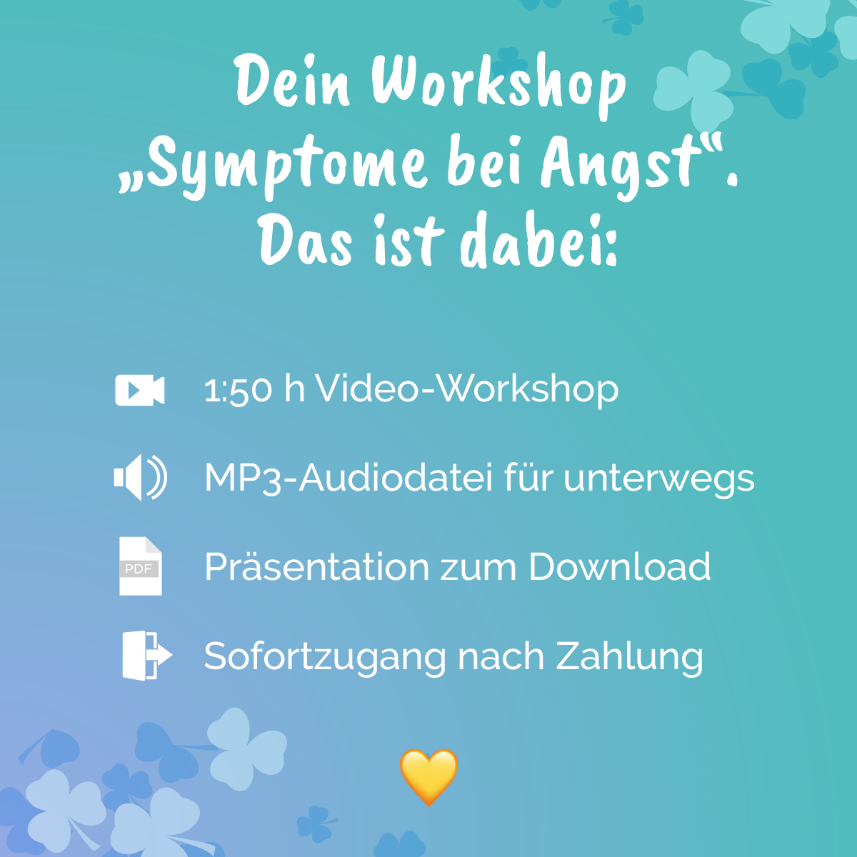 Nach einmaliger Zahlung erhältst du sofort Zugang zur Workshop-Aufzeichnung und allen Begleitmaterialien. Kein Abo – du kannst dir alles so oft und so lange anschauen, wie du möchtest.