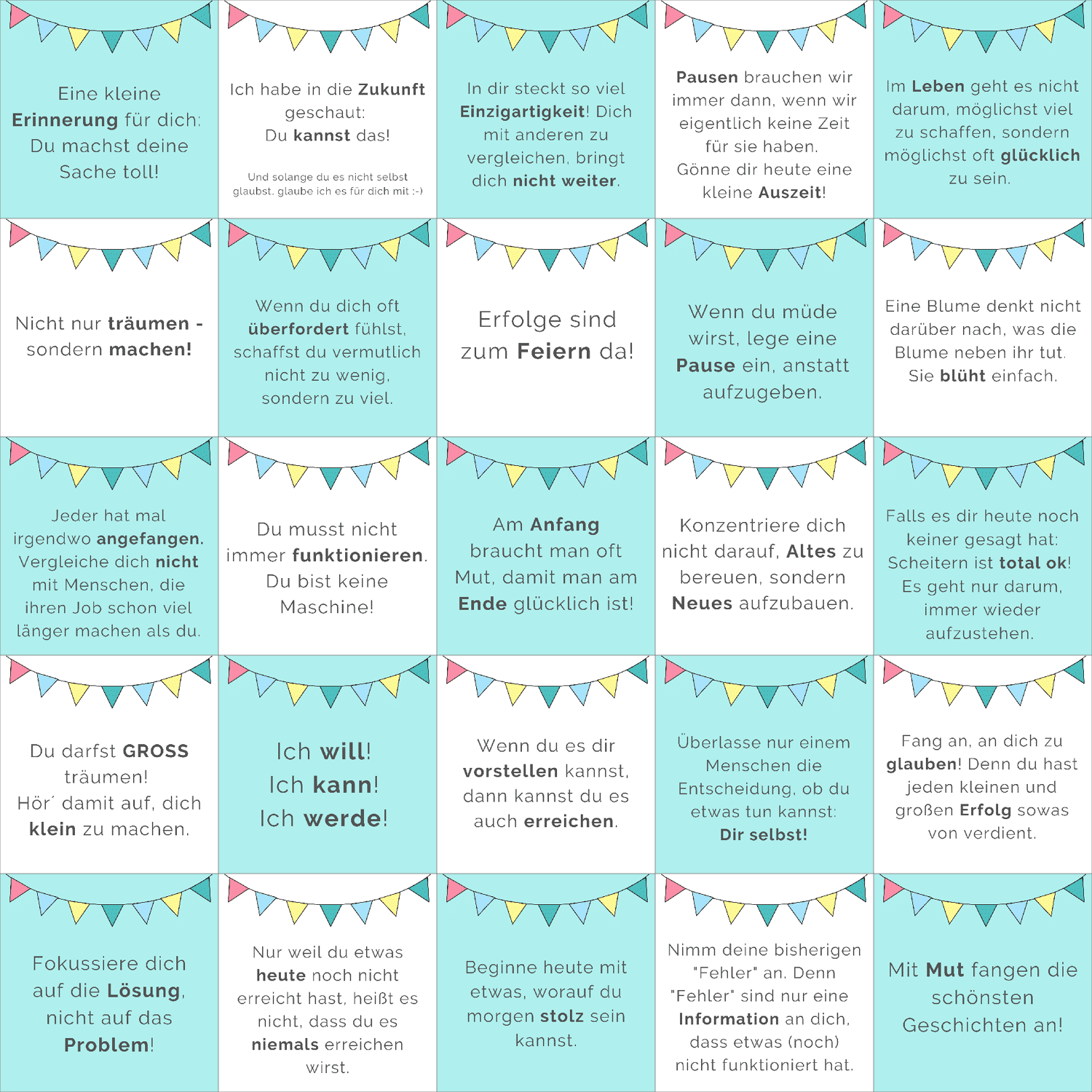 25 hochwertige Glückskarten mit stärkenden Botschaften